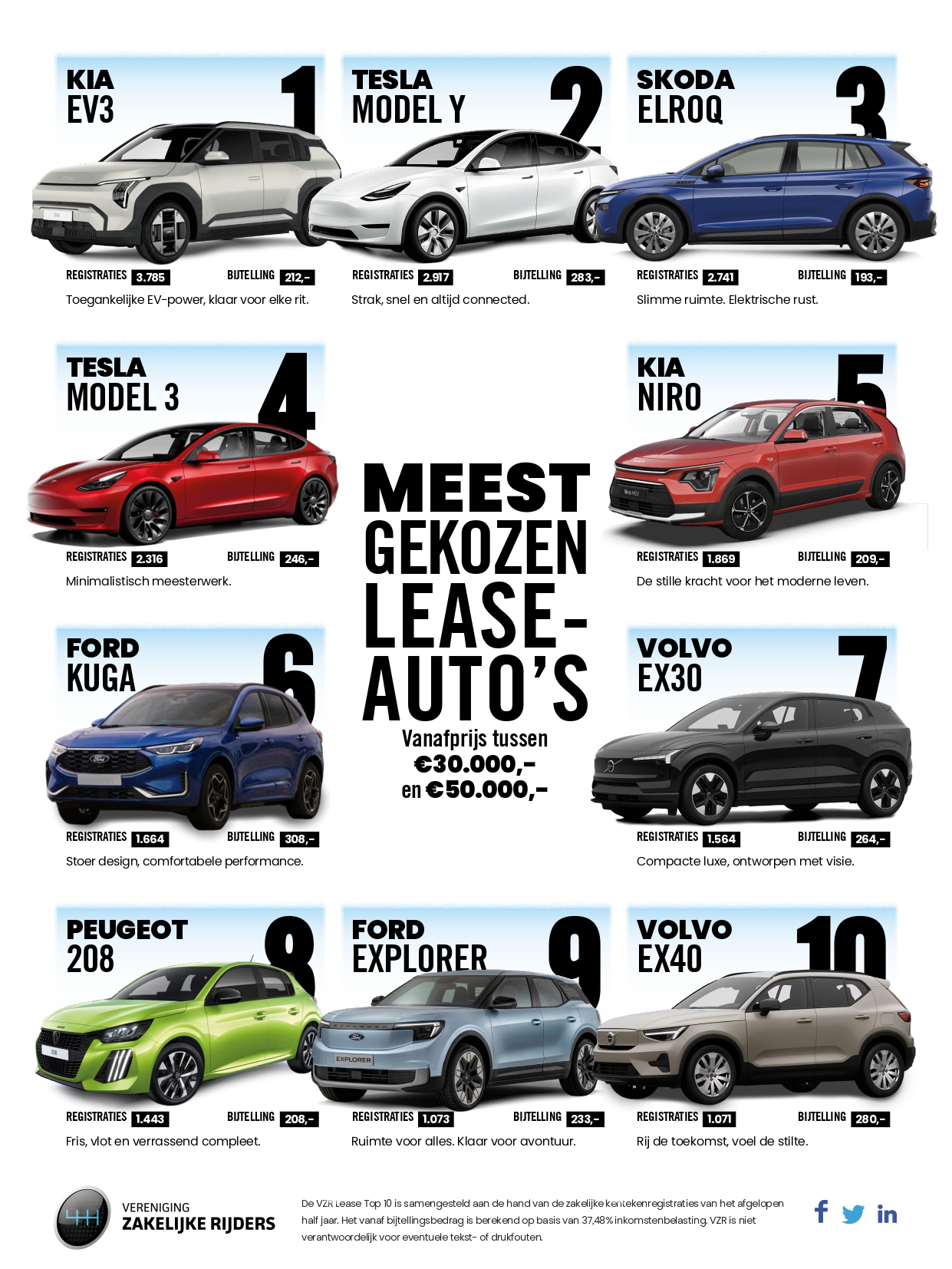 Deze editie van de VZR Lease Top 10 wordt onder andere gebaseerd op de goedkoopste fiscale vanaf prijs van het model. Blijf op de hoogte van alle ontwikkelingen rondom de zakenauto en zakelijke mobiliteit en meld je ook aan als member van VZR.