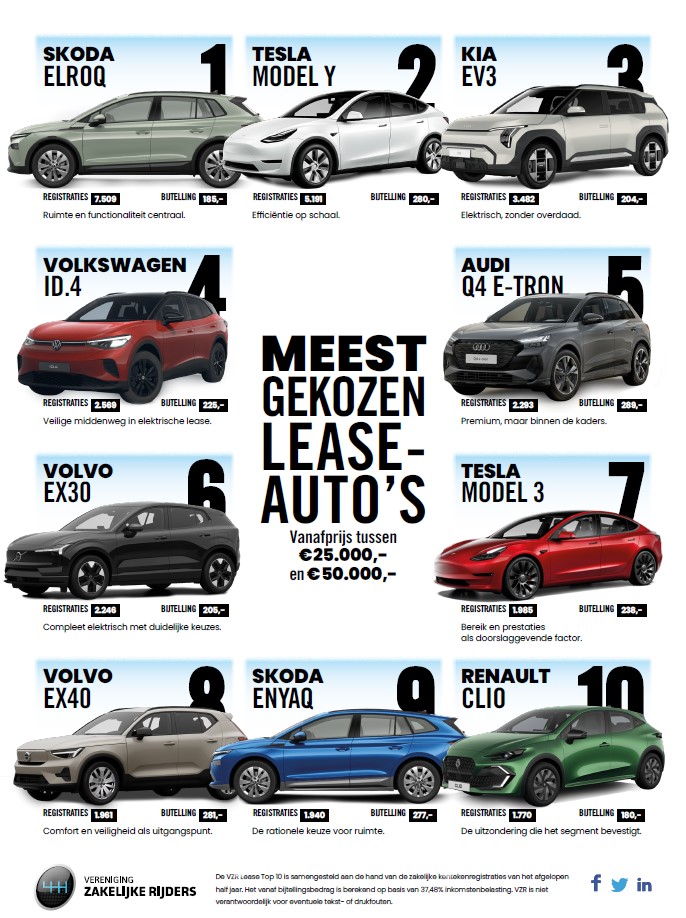 De nieuwste leasecijfers in het segment €25.000 tot €50.000 laten geen trendbreuk zien, maar een kantelpunt dat al heeft plaatsgevonden. Elektrisch rijden is in de zakelijke markt geen statement meer. Het is het vertrekpunt. En wie de lijst bekijkt, ziet nog iets: de SUV is definitief de norm geworden.